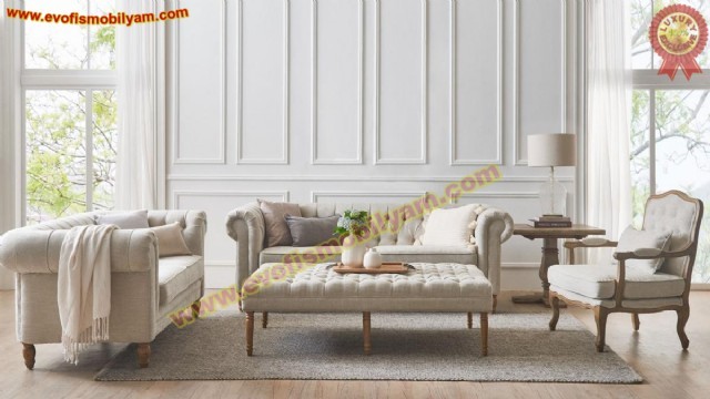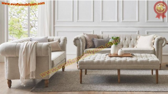 İçerik Sayfası: Bej Chester Koltuk Takımı Lüks Klasik Chester Oturma Odası Takımı