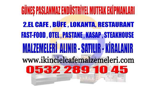İlan Detayı:2. el Lokanta Malzemeleri Almak veya Satmak için size 7/24 kesintisiz hizmet vermekteyiz size en yakın lokanta malzemeleri alan yer arıyorsanız, A''dan Z''ye Komple veya Tek- Tek Malzeme İçin lütfen bizimle iletişime geçiniz. Güneş Ticaret 2.el Lokanta Malzemelerinde A’dan Z’ye Komple veya Tek- Tek Alım- Satım Hizmetleri 0532 289 10 45 www.ikincielcafemalzemeleri.com (İlandaki fiyat Temsilidir.)