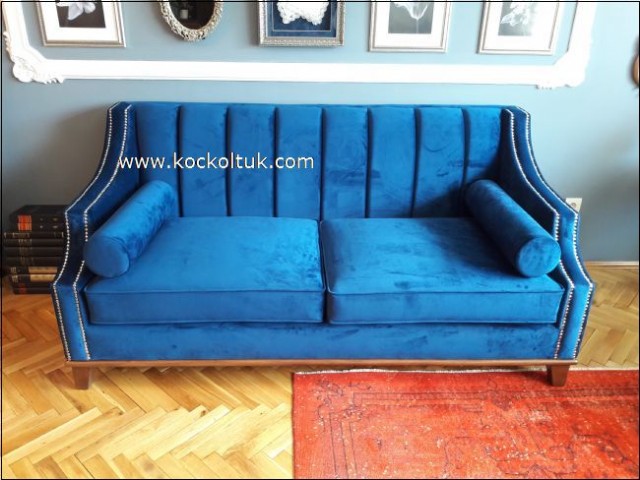 İçerik Sayfası: MAVİ NUBUK KADİFE BYKEPI MODEL İKİLİ KOLTUK