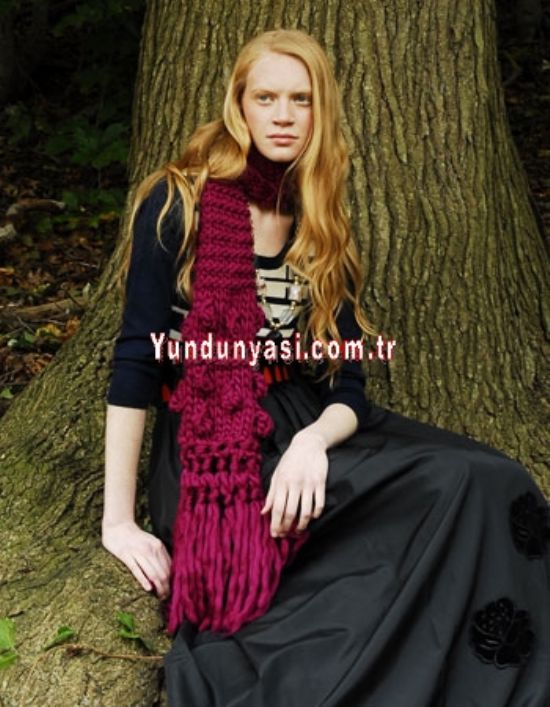 El Örgü Fuşya Ponponlu Ve Püsküllü Atkı, Sipariş Üzerine Örülür